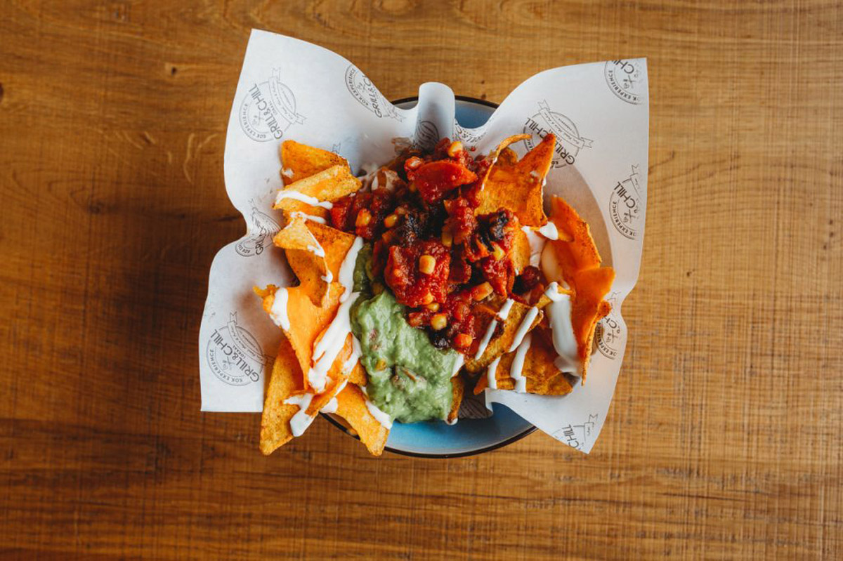 • Nacho’s: tortilla chips, kaassaus, guacamole en crème fraîche
